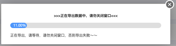 return json(['code'=>1,'data'=>['progress'=>$progress,'page'=>$page+1],'message'=>'>>>正在导出数据中,请勿关闭窗口<<<']);