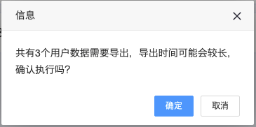 layer.confirm('共有'+num+'个用户数据需要导出,导出时间可能会较长,确认执行吗?',function () {